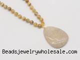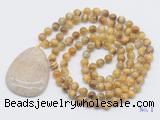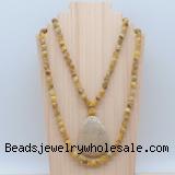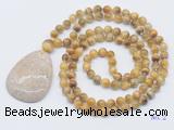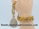 Details: Hand-knotted tiger eye mala necklaces: 108 8mm/10mm round golden tiger eye beads with fossil coral pendant/12mm guru bead and fossil coral pendant (you can choose different pendants, but there will be tiny different in shape & color, we will make the jewelry randomly according to our stock) Item: GMN5101 Material: No.1: 8mm: 108 8mm golden tiger eye beads & fossil coral pendant 10mm: 108 10mm golden tiger eye beads & fossil coral pendant No.2: 8mm: 108 8mm golden tiger eye beads, 12mm guru bead & fossil coral pendant 10mm: 108 10mm golden tiger eye beads, 12mm guru bead & fossil coral pendant Color: See image Length (inch): Necklace length: 8mm: approx 37 - 40 inches (Not including guru bead & pendant) 10mm: approx 46 - 50 inches (Not including guru bead & pendant) Quantity Discount Pricing: 1 - 4: None 5 - 49: 95% 50 - 99: 90% 100+: 85% This mala is available in both 8mm and 10mm beads, The listed price is for 1 piece 8mm mala necklace
