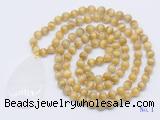 Details: Hand-knotted tiger eye mala necklaces: 108 8mm/10mm round grade AA golden tiger eye beads with white crystal pendant/12mm guru bead and white crystal pendant (you can choose different pendants, but there will be tiny different in shape & color, we will make the jewelry randomly according to our stock) Item: GMN5102 Material: No.1: 8mm: 108 8mm golden tiger eye beads & white crystal pendant 10mm: 108 10mm golden tiger eye beads & white crystal pendant No.2: 8mm: 108 8mm golden tiger eye beads, 12mm guru bead & white crystal pendant 10mm: 108 10mm golden tiger eye beads, 12mm guru bead & white crystal pendant Color: See image Length (inch): Necklace length: 8mm: approx 37 - 40 inches (Not including guru bead & pendant) 10mm: approx 46 - 50 inches (Not including guru bead & pendant) Quantity Discount Pricing: 1 - 4: None 5 - 49: 95% 50 - 99: 90% 100+: 85% This mala is available in both 8mm and 10mm beads, The listed price is for 1 piece 8mm mala necklace