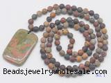 | Catalog » Jewelry » Gemstone Jewelry » Hand-Knotted Mala Necklaces » 8mm Matte 108 Mala Necklaces » 8mm beads with pendant » GMN5121 |