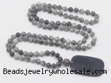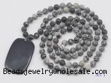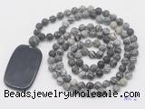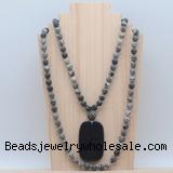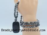 Details: Hand-knotted jasper mala necklaces: 108 8mm/10mm round matte black water jasper beads with blue goldstone pendant/12mm guru bead and blue goldstone pendant (you can choose different pendants, but there will be tiny different in shape & color, we will make the jewelry randomly according to our stock) Item: GMN5125 Material: No.1: 8mm: 108 8mm matte black water jasper beads & blue goldstone pendant 10mm: 108 10mm matte black water jasper beads & blue goldstone pendant No.2: 8mm: 108 8mm matte black water jasper beads, 12mm guru bead & blue goldstone pendant 10mm: 108 10mm matte black water jasper beads, 12mm guru bead & blue goldstone pendant Color: See image Length (inch): Necklace length: 8mm: approx 37 - 40 inches (Not including guru bead & pendant) 10mm: approx 46 - 50 inches (Not including guru bead & pendant) Quantity Discount Pricing: 1 – 4: None 5 – 49: 95% 50 – 99: 90% 100+: 85% This mala is available in both 8mm and 10mm beads, The listed price is for 1 piece 8mm mala necklace