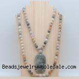 | Catalog » Jewelry » Gemstone Jewelry » Hand-Knotted Mala Necklaces » 8mm Matte 108 Mala Necklaces » 8mm beads with pendant » GMN5135 |