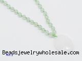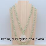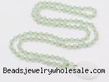 Details: Hand-knotted prehnite mala necklaces: 108 8mm/10mm round grade AA prehnite beads with white crystal pendant/12mm guru bead and white crystal pendant (you can choose different pendants, but there will be tiny different in shape & color, we will make the jewelry randomly according to our stock) Item: GMN5146 Material: No.1: 8mm: 108 8mm prehnite beads & blue chalcedony pendant 10mm: 108 10mm prehnite beads & blue chalcedony pendant No.2: 8mm: 108 8mm prehnite beads, 12mm guru bead & blue chalcedony pendant 10mm: 108 10mm prehnite beads, 12mm guru bead & blue chalcedony pendant Color: See image Length (inch): Necklace length: 8mm: approx 37 - 40 inches (Not including guru bead & pendant) 10mm: approx 46 - 50 inches (Not including guru bead & pendant) Pendants: approx 30*40mm Quantity Discount Pricing: 1 - 4: None 5 - 49: 95% 50 - 99: 90% 100+: 85% This mala is available in both 8mm and 10mm beads, The listed price is for 1 piece 8mm mala necklace