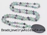 Details: Hand-knotted fluorite mala necklaces: 108 8mm/10mm round fluorite beads with blue goldstone pendant/12mm guru bead and blue goldstone pendant (you can choose different pendants, but there will be tiny different in shape & color, we will make the jewelry randomly according to our stock) Item: GMN4903 Material: No.1: 8mm: 108 8mm fluorite beads & blue goldstone pendant 10mm: 108 10mm fluorite beads & blue goldstone pendant No.2: 8mm: 108 8mm fluorite beads, 12mm guru bead & blue goldstone pendant 10mm: 108 10mm fluorite beads, 12mm guru bead & blue goldstone pendant Color: See image Length (inch): Necklace length: 8mm: approx 37 - 40 inches (Not including guru bead & pendant) 10mm: approx 46 - 50 inches (Not including guru bead & pendant) Pendants: approx 35*55mm Quantity Discount Pricing: 1 - 4: None 5 - 49: 95% 50 - 99: 90% 100+: 85% This mala is available in both 8mm and 10mm beads, The listed price is for 1 piece 8mm mala necklace
