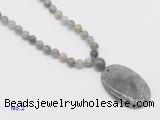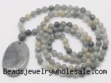 Details: Hand-knotted quartz mala necklaces: 108 8mm/10mm round seaweed quartz beads with labradorite pendant/12mm guru bead and labradorite pendant (you can choose different pendants, but there will be tiny different in shape & color, we will make the jewelry randomly according to our stock) Item: GMN5149 Material: No.1: 8mm: 108 8mm seaweed quartz beads & labradorite pendant 10mm: 108 10mm seaweed quartz beads & labradorite pendant No.2: 8mm: 108 8mm seaweed quartz beads, 12mm guru bead & labradorite pendant 10mm: 108 10mm seaweed quartz beads, 12mm guru bead & labradorite pendant Color: See image Length (inch): Necklace length: 8mm: approx 37 - 40 inches (Not including guru bead & pendant) 10mm: approx 46 - 50 inches (Not including guru bead & pendant) Pendants: approx 35*55mm Quantity Discount Pricing: 1 - 4: None 5 - 49: 95% 50 - 99: 90% 100+: 85% This mala is available in both 8mm and 10mm beads, The listed price is for 1 piece 8mm mala necklace
