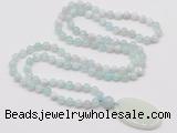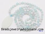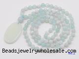 Details: Hand-knotted agate mala necklaces: 108 8mm/10mm round sea blue banded agate beads with luminous stone pendant/12mm guru bead and luminous stone pendant (you can choose different pendants, but there will be tiny different in shape & color, we will make the jewelry randomly according to our stock) Item: GMN5154 Material: No.1: 8mm: 108 8mm sea blue banded agate beads & luminous stone pendant 10mm: 108 10mm sea blue banded agate beads & luminous stone pendant No.2: 8mm: 108 8mm sea blue banded agate beads, 12mm guru bead & luminous stone pendant 10mm: 108 10mm sea blue banded agate beads, 12mm guru bead & luminous stone pendant Color: See image Length (inch): Necklace length: 8mm: approx 37 - 40 inches (Not including guru bead & pendant) 10mm: approx 46 - 50 inches (Not including guru bead & pendant) Pendants: approx 30*50mm Quantity Discount Pricing: 1 - 4: None 5 - 49: 95% 50 - 99: 90% 100+: 85% This mala is available in both 8mm and 10mm beads, The listed price is for 1 piece 8mm mala necklace