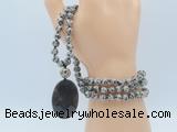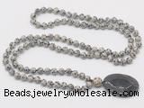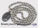 Details: Hand-knotted jasper mala necklaces: 108 8mm/10mm round dalmatian jasper beads with smoky quartz pendant/12mm guru bead and smoky quartz pendant (you can choose different pendants, but there will be tiny different in shape & color, we will make the jewelry randomly according to our stock) Item: GMN5165 Material: No.1: 8mm: 108 8mm dalmatian jasper beads & smoky quartz pendant 10mm: 108 10mm dalmatian jasper beads & smoky quartz pendant No.2: 8mm: 108 8mm dalmatian jasper beads, 12mm guru bead & smoky quartz pendant 10mm: 108 10mm dalmatian jasper beads, 12mm guru bead & smoky quartz pendant Color: See image Length (inch): Necklace length: 8mm: approx 37 - 40 inches (Not including guru bead & pendant) 10mm: approx 46 - 50 inches (Not including guru bead & pendant) Pendants: approx 32*47mm Quantity Discount Pricing: 1 - 4: None 5 - 49: 95% 50 - 99: 90% 100+: 85% This mala is available in both 8mm and 10mm beads, The listed price is for 1 piece 8mm mala necklace