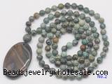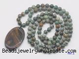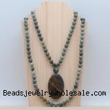 Details: Hand-knotted turquoise mala necklaces: 108 8mm/10mm round African turquoise beads with iron tiger pendant/12mm guru bead and iron tiger pendant (you can choose different pendants, but there will be tiny different in shape & color, we will make the jewelry randomly according to our stock) Item: GMN5173 Material: No.1: 8mm: 108 8mm African turquoise beads & iron tiger pendant 10mm: 108 10mm African turquoise beads & iron tiger pendant No.2: 8mm: 108 8mm African turquoise beads, 12mm guru bead & iron tiger pendant 10mm: 108 10mm African turquoise beads, 12mm guru bead & iron tiger pendant Color: See image Length (inch): Necklace length: 8mm: approx 37 - 40 inches (Not including guru bead & pendant) 10mm: approx 46 - 50 inches (Not including guru bead & pendant) Pendants: approx 35*55mm Quantity Discount Pricing: 1 - 4: None 5 - 49: 95% 50 - 99: 90% 100+: 85% This mala is available in both 8mm and 10mm beads, The listed price is for 1 piece 8mm mala necklace