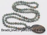 Mala necklace is worn on the neck or wrist while not in use. It may also serve as a nice accessory in everyday life or on some special occasions. Whether as a calming meditation guide or a beautiful, this necklace will be a great addition to your spiritual practice.
