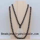 Details: Hand-knotted tourmaline mala necklaces: 108 8mm/10mm round black tourmaline beads with white crystal pendant/12mm guru bead and white crystal pendant (you can choose different pendants, but there will be tiny different in shape & color, we will make the jewelry randomly according to our stock) Item: GMN5176 Material: No.1: 8mm: 108 8mm black tourmaline beads & white crystal pendant 10mm: 108 10mm black tourmaline beads & white crystal pendant No.2: 8mm: 108 8mm black tourmaline beads, 12mm guru bead & white crystal pendant 10mm: 108 10mm black tourmaline beads, 12mm guru bead & white crystal pendant Color: See image Length (inch): Necklace length: 8mm: approx 37 - 40 inches (Not including guru bead & pendant) 10mm: approx 46 - 50 inches (Not including guru bead & pendant) Pendants: approx 35*55mm Quantity Discount Pricing: 1 - 4: None 5 - 49: 95% 50 - 99: 90% 100+: 85% This mala is available in both 8mm and 10mm beads, The listed price is for 1 piece 8mm mala necklace