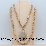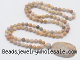 Details: Hand-knotted coral mala necklaces: 108 8mm/10mm round fossil coral beads with fossil coral pendant/12mm guru bead and fossil coral pendant (you can choose different pendants, but there will be tiny different in shape & color, we will make the jewelry randomly according to our stock) Item: GMN5181 Material: No.1: 8mm: 108 8mm fossil coral beads & fossil coral pendant 10mm: 108 10mm fossil coral beads & fossil coral pendant No.2: 8mm: 108 8mm fossil coral beads, 12mm guru bead & fossil coral pendant 10mm: 108 10mm fossil coral beads, 12mm guru bead & fossil coral pendant Color: See image Length (inch): Necklace length: 8mm: approx 37 - 40 inches (Not including guru bead & pendant) 10mm: approx 46 - 50 inches (Not including guru bead & pendant) Pendants: approx 35*55mm Quantity Discount Pricing: 1 - 4: None 5 - 49: 95% 50 - 99: 90% 100+: 85% This mala is available in both 8mm and 10mm beads, The listed price is for 1 piece 8mm mala necklace