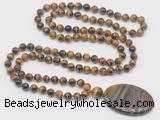 Details: Hand-knotted tiger eye mala necklaces: 108 8mm/10mm round yellow tiger eye beads with iron tiger pendant/12mm guru bead and iron tiger pendant (you can choose different pendants, but there will be tiny different in shape & color, we will make the jewelry randomly according to our stock) Item: GMN5183 Material: No.1: 8mm: 108 8mm yellow tiger eye beads & iron tiger pendant 10mm: 108 10mm yellow tiger eye beads & iron tiger pendant No.2: 8mm: 108 8mm yellow tiger eye beads, 12mm guru bead & iron tiger pendant 10mm: 108 10mm yellow tiger eye beads, 12mm guru bead & iron tiger pendant Color: See image Length (inch): Necklace length: 8mm: approx 37 - 40 inches (Not including guru bead & pendant) 10mm: approx 46 - 50 inches (Not including guru bead & pendant) Pendants: approx 35*55mm Quantity Discount Pricing: 1 - 4: None 5 - 49: 95% 50 - 99: 90% 100+: 85% This mala is available in both 8mm and 10mm beads, The listed price is for 1 piece 8mm mala necklace