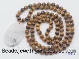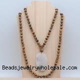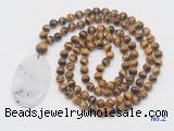 Details: Hand-knotted tiger eye mala necklaces: 108 8mm/10mm round grade AA yellow tiger eye beads with black rutilated quartz pendant/12mm guru bead and black rutilated quartz pendant (you can choose different pendants, but there will be tiny different in shape & color, we will make the jewelry randomly according to our stock) Item: GMN5184 Material: No.1: 8mm: 108 8mm yellow tiger eye beads & black rutilated quartz pendant 10mm: 108 10mm yellow tiger eye beads & black rutilated quartz pendant No.2: 8mm: 108 8mm yellow tiger eye beads, 12mm guru bead & black rutilated quartz pendant 10mm: 108 10mm yellow tiger eye beads, 12mm guru bead & black rutilated quartz pendant Color: See image Length (inch): Necklace length: 8mm: approx 37 - 40 inches (Not including guru bead & pendant) 10mm: approx 46 - 50 inches (Not including guru bead & pendant) Pendants: approx 35*55mm Quantity Discount Pricing: 1 - 4: None 5 - 49: 95% 50 - 99: 90% 100+: 85% This mala is available in both 8mm and 10mm beads, The listed price is for 1 piece 8mm mala necklace