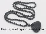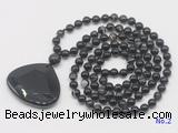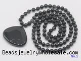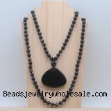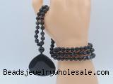Details: Hand-knotted agate mala necklaces: 108 8mm/10mm round black banded agate beads with black agate pendant/12mm guru bead and black agate pendant (you can choose different pendants, but there will be tiny different in shape & color, we will make the jewelry randomly according to our stock) Item: GMN5213 Material: No.1: 8mm: 108 8mm black banded agate beads & black agate pendant 10mm: 108 10mm black banded agate beads & black agate pendant No.2: 8mm: 108 8mm black banded agate beads, 12mm guru bead & black agate pendant 10mm: 108 10mm black banded agate beads, 12mm guru bead & black agate pendant Color: See image Length (inch): Necklace length: 8mm: approx 37 - 40 inches (Not including guru bead & pendant) 10mm: approx 46 - 50 inches (Not including guru bead & pendant) Pendants: approx 45*53mm Quantity Discount Pricing: 1 – 4: None 5 – 49: 95% 50 – 99: 90% 100+: 85% This mala is available in both 8mm and 10mm beads, The listed price is for 1 piece 8mm mala necklace