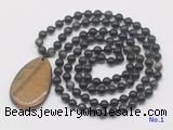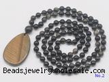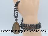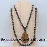Details: Hand-knotted obsidia mala necklaces: 108 8mm/10mm round golden obsidian beads with yellow tiger eye pendant/12mm guru bead and yellow tiger eye pendant (you can choose different pendants, but there will be tiny different in shape & color, we will make the jewelry randomly according to our stock) Item: GMN5236 Material: No.1: 8mm: 108 8mm golden obsidian beads & yellow tiger eye pendant 10mm: 108 10mm golden obsidian beads & yellow tiger eye pendant No.2: 8mm: 108 8mm golden obsidian beads, 12mm guru bead & yellow tiger eye pendant 10mm: 108 10mm golden obsidian beads, 12mm guru bead & yellow tiger eye pendant Color: See image Length (inch): Necklace length: 8mm: approx 37 - 40 inches (Not including guru bead & pendant) 10mm: approx 46 - 50 inches (Not including guru bead & pendant) Pendants: approx 35*55mm Quantity Discount Pricing: 1 – 4: None 5 – 49: 95% 50 – 99: 90% 100+: 85% This mala is available in both 8mm and 10mm beads, The listed price is for 1 piece 8mm mala necklace
