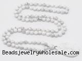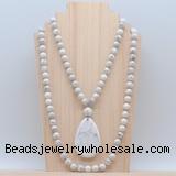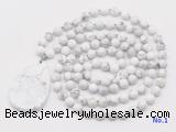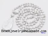 Details: Hand-knotted howlite mala necklaces: 108 8mm/10mm round white howlite beads with white howlite pendant/12mm guru bead and white howlite pendant (you can choose different pendants, but there will be tiny different in shape & color, we will make the jewelry randomly according to our stock) Item: GMN5241 Material: No.1: 8mm: 108 8mm white howlite beads & white howlite pendant 10mm: 108 10mm white howlite beads & white howlite pendant No.2: 8mm: 108 8mm white howlite beads, 12mm guru bead & white howlite pendant 10mm: 108 10mm white howlite beads, 12mm guru bead & white howlite pendant Color: See image Length (inch): Necklace length: 8mm: approx 37 - 40 inches (Not including guru bead & pendant) 10mm: approx 46 - 50 inches (Not including guru bead & pendant) Pendants: approx 35*55mm Quantity Discount Pricing: 1 – 4: None 5 – 49: 95% 50 – 99: 90% 100+: 85% This mala is available in both 8mm and 10mm beads, The listed price is for 1 piece 8mm mala necklace