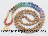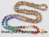 | Catalog » Jewelry » Gemstone Jewelry » Hand-Knotted Mala Necklaces » Chakra 108 Mala Necklaces » 7 Chakra beads with charm » GMN6025 |