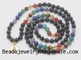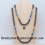 | Catalog » Jewelry » Gemstone Jewelry » Hand-Knotted Mala Necklaces » Chakra 108 Mala Necklaces » 7 Chakra beads with charm » GMN6027 |