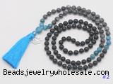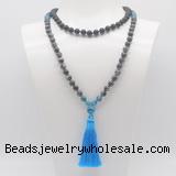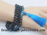 Details: Hand-knotted black agate mala necklaces: 108 8mm/10mm round matte black agate, black labradorite, apatite beads & 12mm apatite guru bead with tassel & charm (you can choose different tassel & charm) Item: GMN6318 Material: No.1: 8mm/10mm: matte black agate, black labradorite, apatite beads, 12mm apatite guru bead And tassel No.2: 8mm/10mm:matte black agate, black labradorite, apatite beads, 12mm apatite guru bead And tassel & charm Color: See image Length (inch): Necklace length: 8mm: approx 37 - 40 inches (Not including guru bead & tassel) 10mm: approx 46 - 50 inches (Not including guru bead & tassel) Quantity Discount Pricing: 1 – 4: None 5 – 49: 95% 50 – 99: 90% 100+: 85% This mala is available in both 8mm and 10mm beads, The listed price is for 1 piece 8mm mala necklace