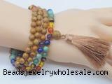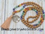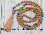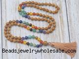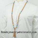Details: Hand-knotted 7 Chakra mala necklaces: 108 8mm/10mm round wooden jasper, 7 chakra gemstone beads & 12mm wooden jasper guru bead with with tassel/tassel & alloy charm (you can choose different tassel & charm) Item: GMN6336 Material: No.1: 8mm/10mm wooden jasper, 7 chakra beads, 12mm wooden jasper guru bead And tassel No.2: 8mm/10mm wooden jasper, 7 chakra beads, 12mm wooden jasper guru bead And tassel & charm Color: See image Length (inch): Necklace length: 8mm: approx 37 - 40 inches (Not including guru bead & tassel) 10mm: approx 46 - 50 inches (Not including guru bead & tassel) Quantity Discount Pricing: 1 – 4: None 5 – 49: 95% 50 – 99: 90% 100+: 85% This mala is available in both 8mm and 10mm beads, The listed price is for 1 piece 8mm mala necklace