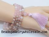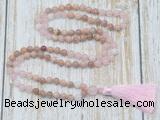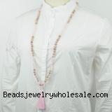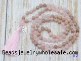 Details: Hand-knotted sunstone mala necklaces: 108 8mm/10mm round sunstone, rose quartz, white jade beads & 12mm rose quartz guru bead with tassel/tassel & alloy charm (you can choose different tassel & charm) Item: GMN6355 Material: No.1: 8mm/10mm sunstone, rose quartz, white jade beads, 12mm rose quartz guru bead And tassel No.2: 8mm/10mm sunstone, rose quartz, white jade beads, 12mm rose quartz guru bead And tassel & charm Color: See image Length (inch): Necklace length: 8mm: approx 37 - 40 inches (Not including guru bead & tassel) 10mm: approx 46 - 50 inches (Not including guru bead & tassel) Quantity Discount Pricing: 1 – 4: None 5 – 49: 95% 50 – 99: 90% 100+: 85% This mala is available in both 8mm and 10mm beads, The listed price is for 1 piece 8mm mala necklace