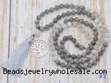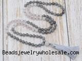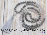 Details: Hand-knotted labradorite mala necklaces: 108 8mm/10mm round labradorite, rose quartz, white moonstone beads & 12mm white moonstone guru bead with tassel/tassel & alloy charm (you can choose different tassel & charm) Item: GMN6356 Material: No.1: 8mm/10mm labradorite, rose quartz, white moonstone beads, 12mm white moonstone guru bead And tassel No.2: 8mm/10mm labradorite, rose quartz, white moonstone beads, 12mm white moonstone guru bead And tassel & charm Color: See image Length (inch): Necklace length: 8mm: approx 37 - 40 inches (Not including guru bead & tassel) 10mm: approx 46 - 50 inches (Not including guru bead & tassel) Quantity Discount Pricing: 1 – 4: None 5 – 49: 95% 50 – 99: 90% 100+: 85% This mala is available in both 8mm and 10mm beads, The listed price is for 1 piece 8mm mala necklace