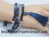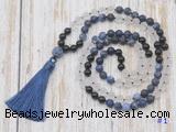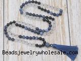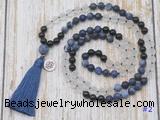 Details: Hand-knotted gemstone mala necklaces: 108 8mm/10mm round matte sodalite, matte white crystal, black agate beads & 12mm matte sodalite guru bead with tassel/tassel & alloy charm (you can choose different tassel & charm) Item: GMN6366 Material: No.1: 8mm/10mm matte sodalite, matte white crystal, black agate beads, 12mm matte sodalite guru bead And tassel No.2: 8mm/10mm matte sodalite, matte white crystal, black agate beads, 12mm matte sodalite guru bead And tassel & charm Color: See image Length (inch): Necklace length: 8mm: approx 37 - 40 inches (Not including guru bead & tassel) 10mm: approx 46 - 50 inches (Not including guru bead & tassel) Quantity Discount Pricing: 1 – 4: None 5 – 49: 95% 50 – 99: 90% 100+: 85% This mala is available in both 8mm and 10mm beads, The listed price is for 1 piece 8mm mala necklace