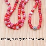 Material: Red banded agate, No.72 jade thread & Zircon magnetic round clasp