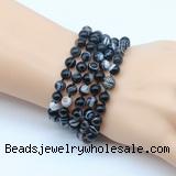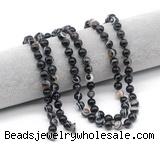 Material: Black banded agate, No.72 jade thread & Zircon magnetic round clasp