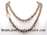 Style: No.1: smoky quartz beads mala necklace No.2: No.1 with charm No.3: No.1 with 12mm smoky quartz guru bead & tassel No.4: No.1 with 12mm smoky quartz guru bead, tassel & charm (You can choose different OT clasp/chram/tassel; we will use the lobster clasp same as the color of OT clasp)