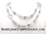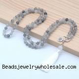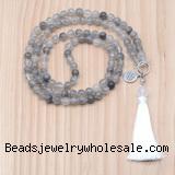 Style: No.1: cloudy quartz beads mala necklace No.2: No.1 with charm No.3: No.1 with 12mm cloudy quartz guru bead & tassel No.4: No.1 with 12mm cloudy quartz guru bead, tassel & charm (You can choose different OT clasp/chram/tassel; we will use the lobster clasp same as the color of OT clasp)