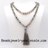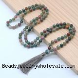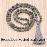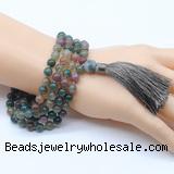 Material: 8mm/10mm Indian agate, 12mm Indian agate guru bead, tassel & No.72 jade thread [you can choose different guru bead(style) & tassel]