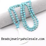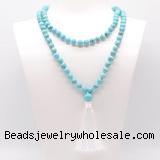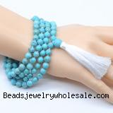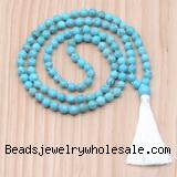 Details: Hand-knotted turquoise mala necklaces: 27/54/108 8mm/10mm round blue howlite beads & 12mm blue howlite guru bead with satin tassel
