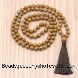 Details: Hand-knotted jasper mala necklaces: 27/54/108 8mm/10mm round wooden jasper beads & 12mm wooden jasper guru bead with satin tassel