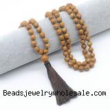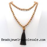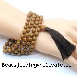 Material: 8mm/10mm wooden jasper, 12mm wooden jasper guru bead, tassel & No.72 jade thread [you can choose different guru bead(style) & tassel]