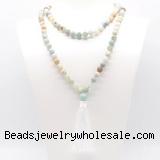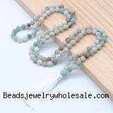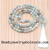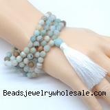 Details: Hand-knotted gemstone mala necklaces: 27/54/108 8mm/10mm round matte amazonite beads & 12mm matte amazonite guru bead with satin tassel