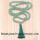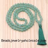 Details: Hand-knotted gemstone mala necklaces: 27/54/108 8mm/10mm round matte green aventurine beads & 12mm matte green aventurine guru bead with satin tassel