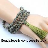 Material: 8mm/10mm matte rhyolite, 12mm matte rhyolite guru bead, tassel & No.72 jade thread [you can choose different guru bead(style) & tassel]