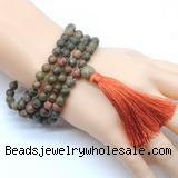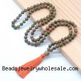 Material: 8mm/10mm matte unakite, 12mm matte unakite guru bead, tassel & No.72 jade thread [you can choose different guru bead(style) & tassel]