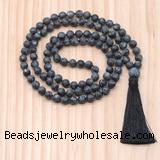 Material: 8mm/10mm matte black labradorite, 12mm matte black labradorite guru bead, tassel & No.72 jade thread [you can choose different guru bead(style) & tassel]