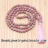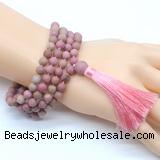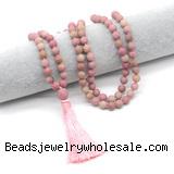 Material: 8mm/10mm matte pink wooden jasper, 12mm matte pink wooden jasper guru bead, tassel & No.72 jade thread [you can choose different guru bead(style) & tassel]