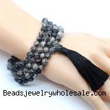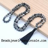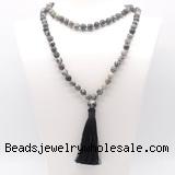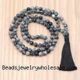 Material: 8mm/10mm matte black water jasper, 12mm matte black water jasper guru bead, tassel & No.72 jade thread [you can choose different guru bead(style) & tassel]
