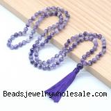 Details: Hand-knotted quartz mala necklaces: 27/54/108 8mm/10mm round dogtooth amethyst beads & 12mm dogtooth amethyst guru bead with satin tassel