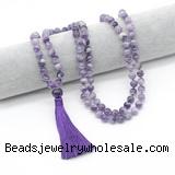 Material: 8mm/10mm dogtooth amethyst, 12mm dogtooth amethyst guru bead, tassel & No.72 jade thread [you can choose different guru bead(style) & tassel]