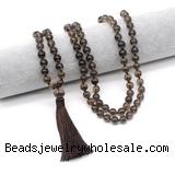 Material: 8mm/10mm smoky quartz, 12mm smoky quartz guru bead, tassel & No.72 jade thread [you can choose different guru bead(style) & tassel]