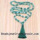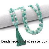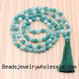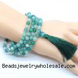 Details: Hand-knotted agate mala necklaces: 27/54/108 8mm/10mm round green banded agate beads & 12mm banded agate guru bead with satin tassel
