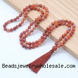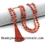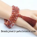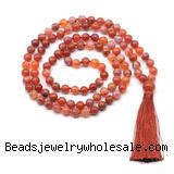 Details: Hand-knotted agate mala necklaces: 27/54/108 8mm/10mm round fire agate beads & 12mm fire agate guru bead with satin tassel