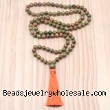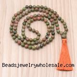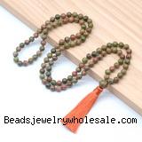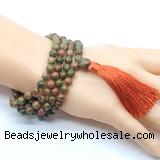 Material: 8mm/10mm unakite, 12mm unakite guru bead, tassel & No.72 jade thread [you can choose different guru bead(style) & tassel]