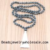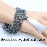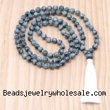 Details: Hand-knotted jasper mala necklaces: 27/54/108 8mm/10mm round eagle eye jasper beads & 12mm eagle eye jasper guru bead with satin tassel