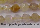 CRU622 15.5 inches 8mm faceted nuggets golden rutilated quartz beads