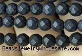 CAA2438 15.5 inches 6mm faceted round matte black agate beads